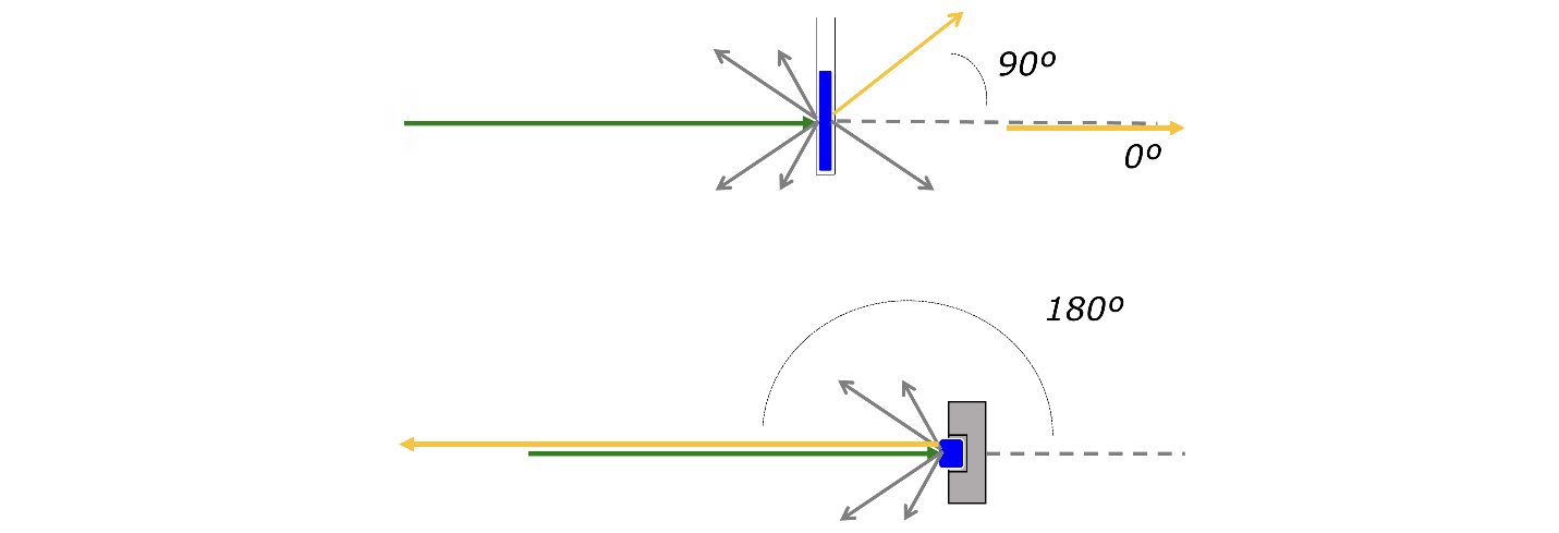 Uma característica muito importante da espectroscopia de Raman é o tamanho da amostra – ou, mais precisamente, o tamanho da porção da amostra que é efetivamente analisada. Isto tem implicações tanto no tamanho das partículas que podem ser estudadas por Raman como nas aplicações em imagem. A colocação da amostra é relativamente simples e são possíveis várias geometrias de recolha da radiação (FIGURA 5).