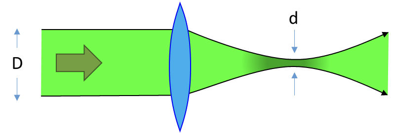 O feixe laser incidente é geralmente estreito (cerca de 1 mm) e, como ilustrado na Figura 6, um feixe com 1 mm de largura pode ser focado num ponto com diâmetro de 10 μm ou menos, dependendo do comprimento de onda. A penetração do laser na amostra depende (i) do comprimento de onda (quanto maior o comprimento de onda, maior a profundidade de penetração) e (ii) da densidade óptica da amostra. Definir um valor típico de profundidade de penetração é algo especulativo, mas um intervalo de 1 a 200 μm pode ser considerado indicativo.