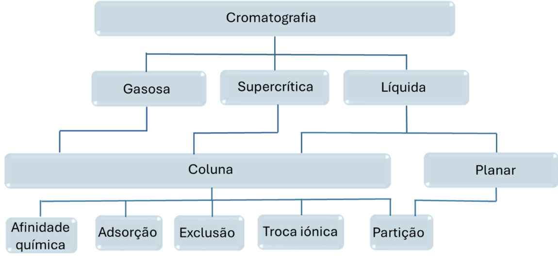Cromatografia em coluna: a fase estacionária está contida dentro de um tubo (coluna). Dependendo da fase móvel, divide-se em: