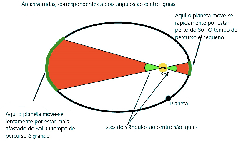 - o vetor \(\overrightarrow{SP}\) varre áreas iguais em intervalos de tempo iguais (Lei das áreas de Kepler).