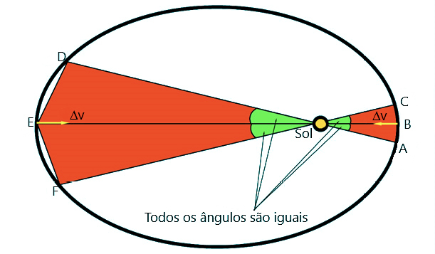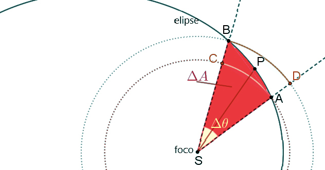 Em todo o ponto da órbita, não importa quão distante ou quão perto de \(S\) esteja, o \(\Delta v\), correspondente a um dado ângulo \(\Delta t\), sempreomesmo.