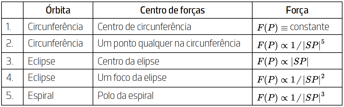 - Problema inverso… Conhecido o campo de forças central \(F\), de centro de forças fixo \(S\), determinar a trajetória, \(t\mapsto P(t)\), de um ponto \(P\) que se move sob a ação desse campo de forças.